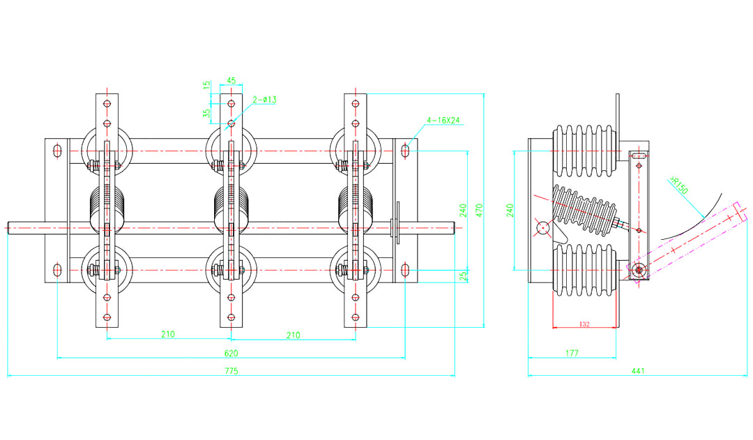 ສ່ວນທີ່ດໍາເນີນການຂອງ GN19-12 / 400, 630, 1000, 150, 1250 ປະເພດຫຼັບ ick switch ເຊື່ອມຕໍ່ຢູ່ເທິງຖານໂດຍແຕ່ລະເສົາໄຟສໍາລັບແຕ່ລະໄລຍະ. (GN19-12C / 400, 630, 1000, ປະເພດມີການຕິດຕັ້ງ 3 ໄລຍະປະກອບດ້ວຍມີດຕິດຕໍ່ແລະຕິດຕໍ່ຜູ້ຖືຕິດຕໍ່ (ຫຼືກົດປຸ່ມຕິດຕໍ່). ແຕ່ລະໄລຍະຂອງມີດຕິດຕໍ່ແມ່ນເຊື່ອມຕໍ່ກັບກາງຂອງເຄື່ອງຖັກ, ເຕົາເຫລັກແລະຕິດຕັ້ງຢູ່ເທິງຖານຂອງ spindle ເຊື່ອມຕໍ່. spindle ແມ່ນເຊື່ອມຕໍ່ກັບ rod ເຊື່ອມຕໍ່ (ຜູ້ໃຫ້ບໍລິການສະຫນອງ) ແລະ CS6-1 ປະເພດກົນໄກການເຄື່ອນຍ້າຍຜ່ານການຈັບ. ມີດເຊື່ອມຕໍ່ການເຊື່ອມຕໍ່ແມ່ນປະກອບດ້ວຍແຜ່ນທອງແດງທີ່ມີສອງແຜ່ນ, ເຊິ່ງຍັງຊ່ວຍເພີ່ມຄວາມເຂັ້ມແຂງດ້ານລຸ່ມຂອງມີດ, ເພື່ອໃຫ້ສະຖຽນລະພາບຂອງມີດຫຼຸດລົງ. ສົ້ນຫນຶ່ງຂອງມີດສໍາລັບຜູ້ຕິດຕໍ່ແມ່ນຕິດຢູ່ໃນທ່ອນໄມ້ຕິດຕໍ່ (ຫຼືຢູ່ເທິງໄມ້ຢືນຢັນ) ໂດຍໄລປະຕູ (ລົດຂອງ Shaw). GN19-12 / 1000, 1250 ໃນການຕິດຕໍ່ກັບການຕິດຕັ້ງແຜ່ນລັອກແມ່ເຫຼັກ, ໃນເວລາທີ່ກະແສໄຟຟ້າແມ່ເຫຼັກ ຄວາມດຶງດູດ. GN19-12 / 400, 600, 630 ລໍາປ່ຽນຮູບມີຂີດຈໍາກັດຫນ້ອຍລົງໂດຍຜ່ານກະແສໄຟຟ້າ, ສະນັ້ນບໍ່ຈໍາເປັນຕ້ອງເພີ່ມແຜ່ນລັອກແມ່ເຫຼັກ.