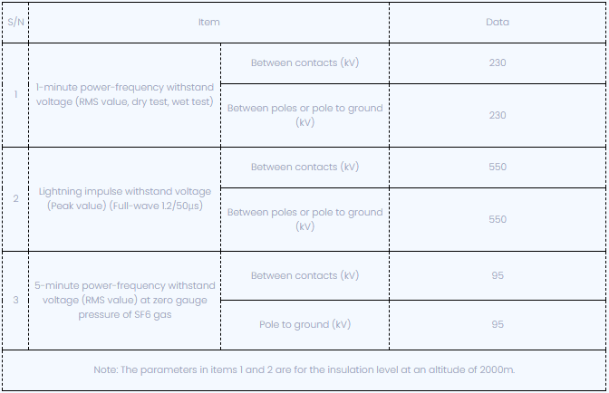 Due to the inherent high insulation strength of sulfur hexafluoride gas and the optimal contact movement of the circuit breaker, the circuit breaker breaks the capacitive current without reignition; the external insulation level is high, the external insulation is designed with a large creepage distance, the creepage ratio distance is ≥31mm/kV, and the dirt resistance performance is excellent. It can also operate safely in harsh environments;
