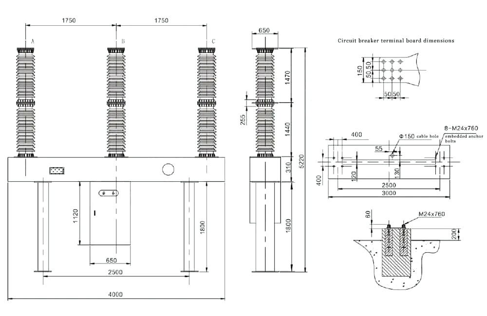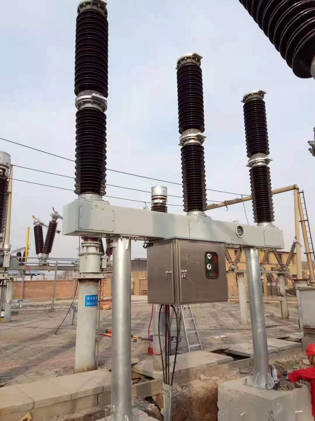 The circuit breaker adopts a three-phase porcelain column single-break structure. The three phases are equipped with a spring operating mechanism, which is centrally arranged and three-phase operated, so the appearance is novel and exquisite. The circuit breaker uses SF6 gas as the insulation and arc extinguishing medium. During operation, the three-pole SF6 gas of the circuit breaker is connected, and a pointer-type density relay is used to monitor its pressure and density progress. Due to the self-energy arc extinguishing principle and the optimized design in the circuit breaker movement system, the mechanical efficiency is effectively improved and the operating work is minimized;
