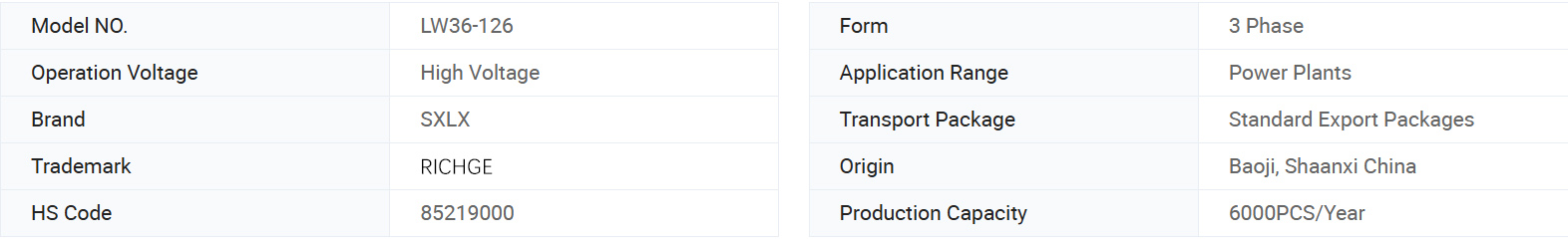 LW-126 type outdoor high voltage alternating current sulfur hexafluoride circuit breaker (hereinafter referred to as the circuit breaker) is a kind of outdoor high-voltage switchgear equipment with three poles AC SOHzand it adopts SF6 gas as arc extinguishing and insulation medium. It can be used for the separation and combination of rated current and fault current, capacitor bank, and switching circuit, and it can also be used as aninterconnecting breaker so as to realize the control and protection of transmission lines and equipment, especially suitable for frequent operation.The circuit breaker is equipped with CT20 type spring operation mechanism.This circuit breaker complies with the requirements of IEC 62271-100.
