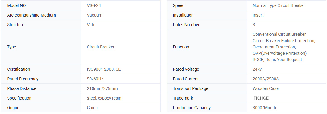 VSC-24 Pole ABSEDWEDED POLDED VCB Breaker Indoor Circuit Circle Breaker 24kV